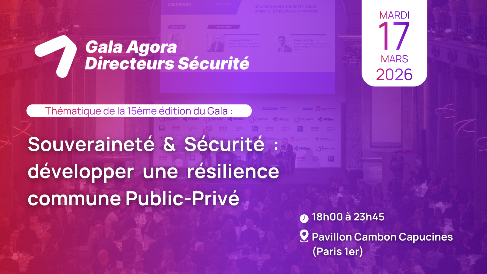 L’UFACS est une nouvelle fois cette année partenaire du Gala Agora Directeurs Sécurité 2026, le grand rendez-vous annuel de la profession organisé par Agora Managers Groupe qui se tiendra  au Pavillon Cambon – Capucines à Paris le 17 mars prochain.